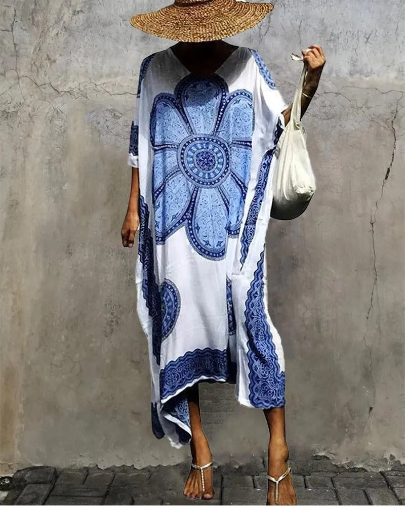 Be the first to review “Vintage Geometric Print Batwing Sleeve Maxi Dress” Cancel reply